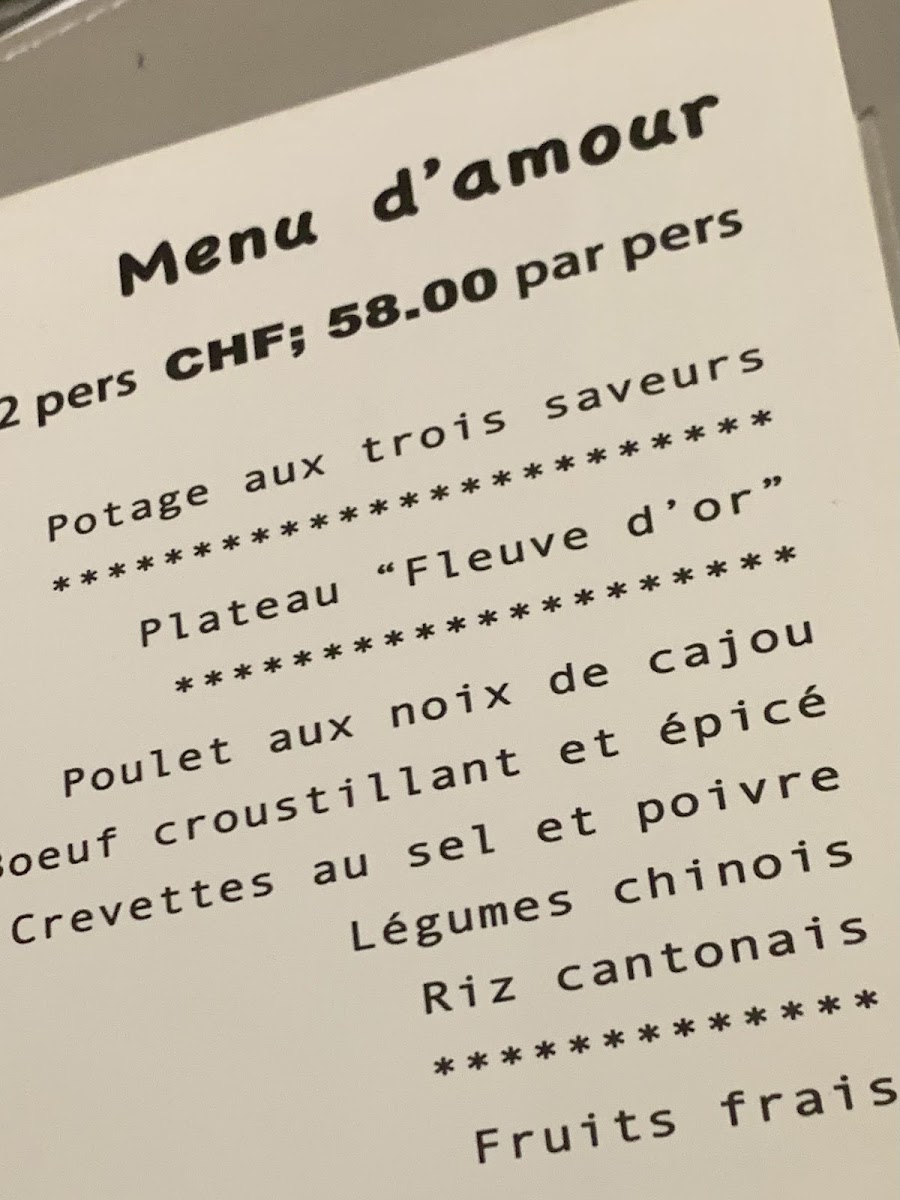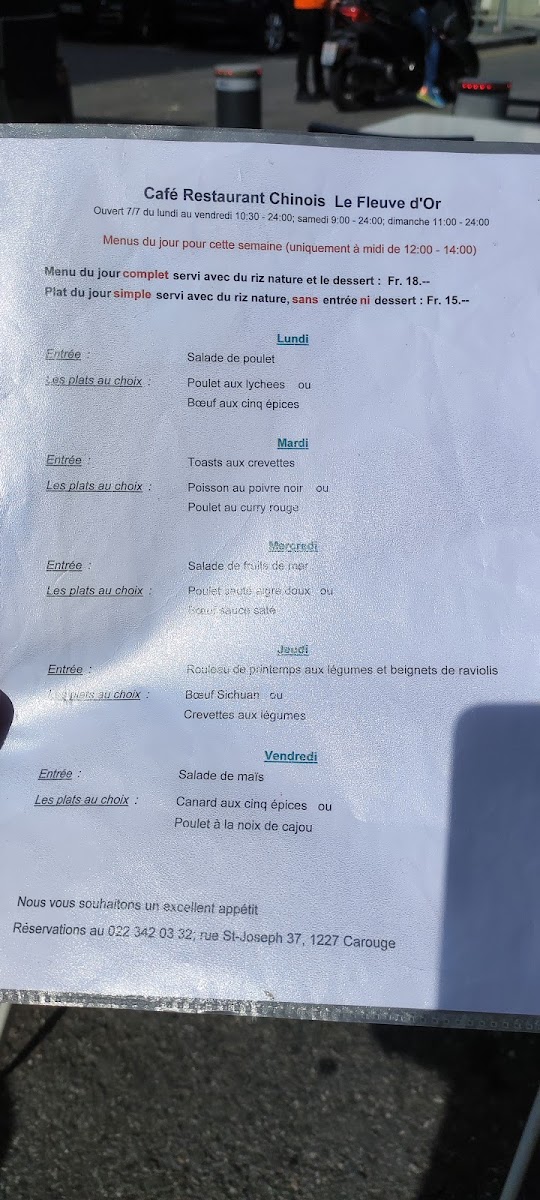 This diverse menu ensures there's something for everyone, from savory meats to delicate seafood, spicy options, and comforting sides, making Fleuve D'or a great destination for anyone looking to indulge in Chinese cuisine with a modern touch.